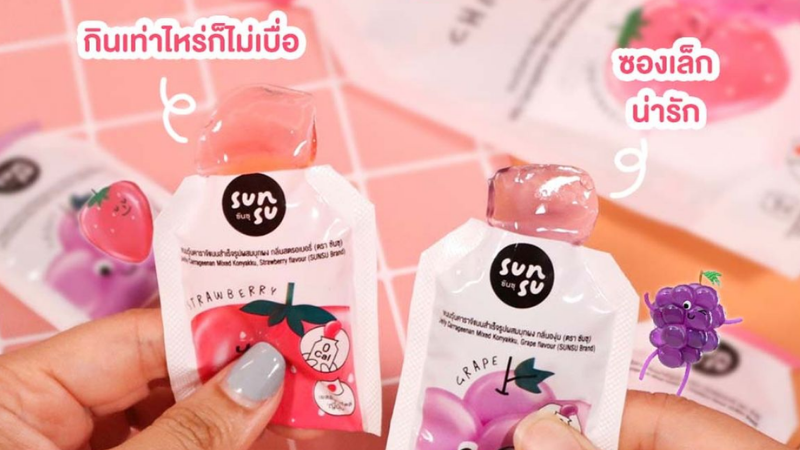 แบรนด์เยลลี่ 0 แคลอย่าง SUNSU คือหนึ่งในตัวอย่างดีไซน์ที่คิดจากหัวใจจริงๆ โดยในหนึ่งซองใหญ่จะใส่ซองเล็กๆที่หยิบกินได้พอดีมือ